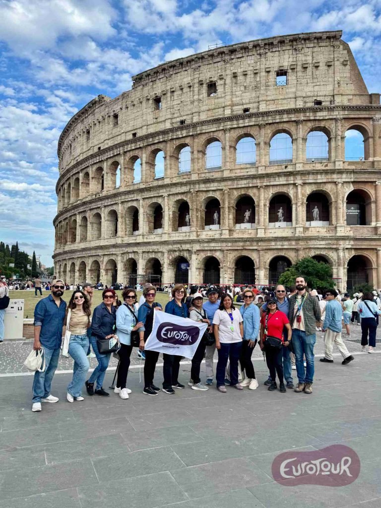 – Tour panorámico en autobús por los lugares más emblemáticos de Roma: Coliseo, Castelo San Ángelo, Coliseo, Foro Romano, Plaza Venecia.